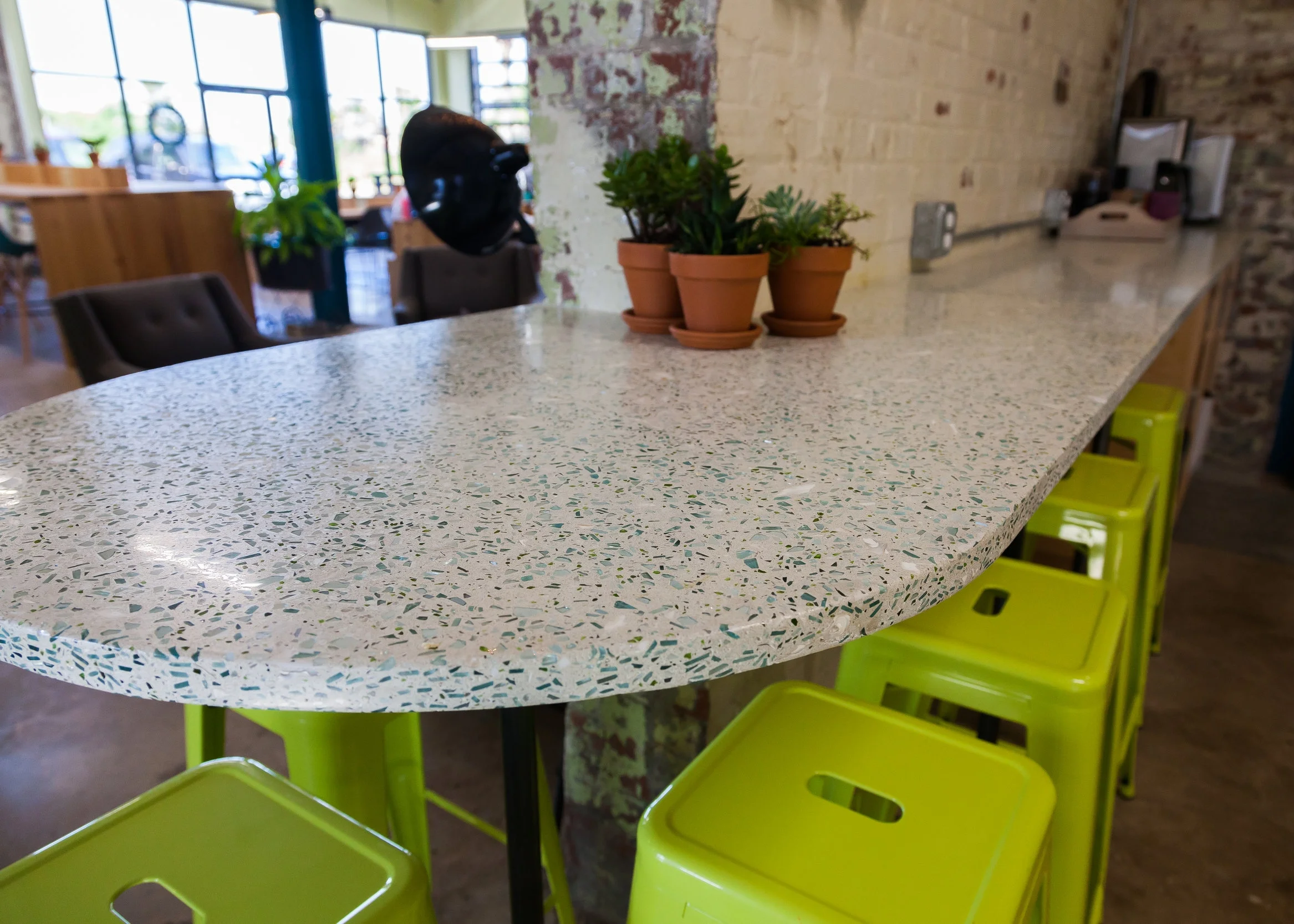 GlassEco Surfaces can be resin or concrete-based depending upon the application. All options are customizable.